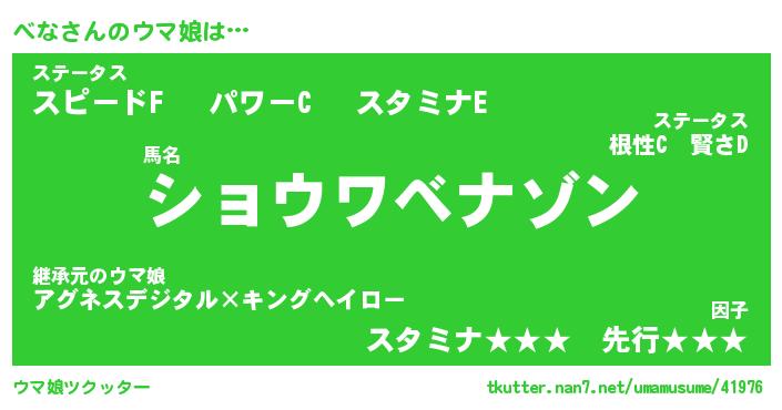 | ポケモン風あだ名 | 『ベナチュウ』『ベナダネ』『ヒベナ』 |