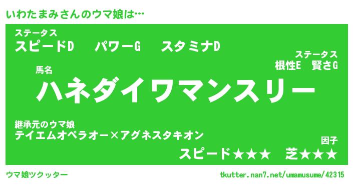 | ヒーロー風カッコイイあだ名 | 『スーパーイワタマミ』『黄金騎士イワ』 |