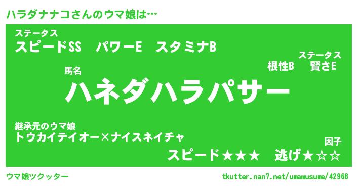 | ヒーロー風カッコイイあだ名 | 『スーパーハラダナナコ』『黄金騎士ハラ』 |