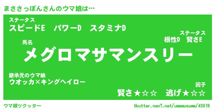 | 伝説のあだ名 | 『伝説の傭兵まささっぽん』 |