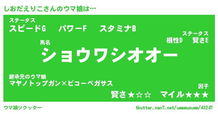 | ヒーロー風カッコイイあだ名 | 『スーパーシオダエリコ』『天弓騎士シオ』 |