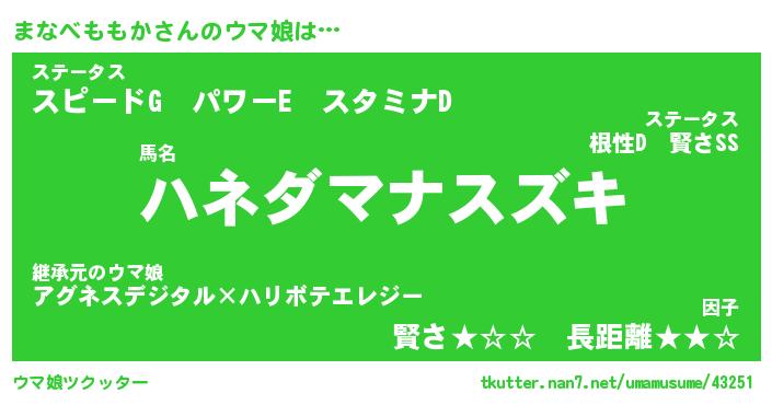 | 欧米人風あだ名 | 『マイケルまなべももか』 |