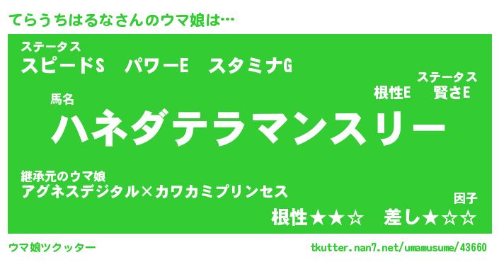 | 伝説のあだ名 | 『封印されし傭兵てらうちはるな』 |