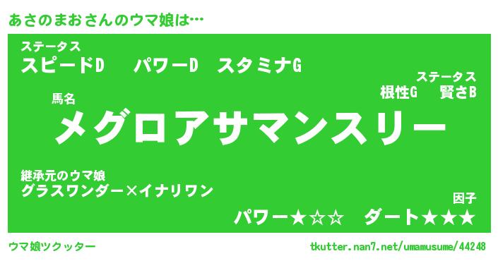 | ヘコむあだ名 | 『あさふぇ~』『なまこ酢』 |