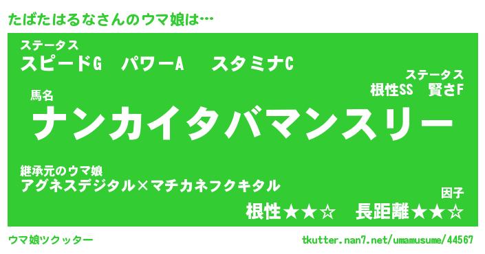 | ヒーロー風カッコイイあだ名 | 『スーパータバタハルナ』『天弓騎士タバ』 |