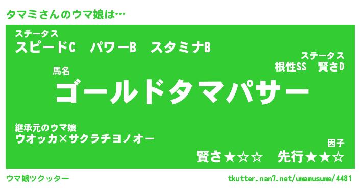 | ファンタジー風あだ名 | 『タマフェル』『エターナルタマミー』 |