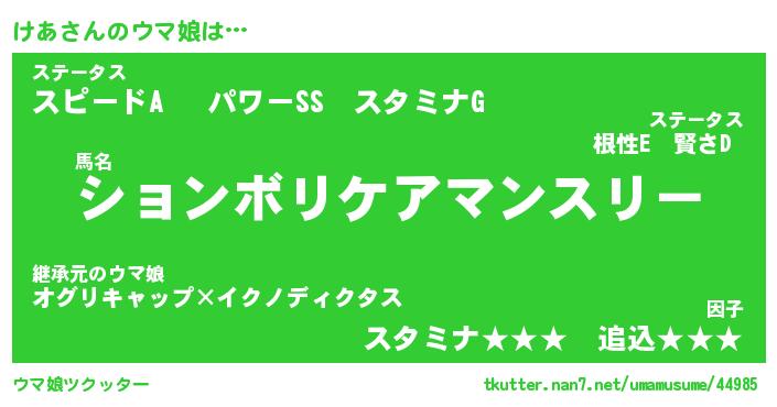 | 伝説のあだ名 | 『封印されしスナイパーけあ』 |