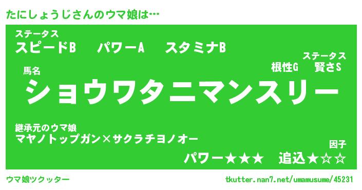 | ポケモン風あだ名 | 『タニチュウ』『タニシダネ』 |