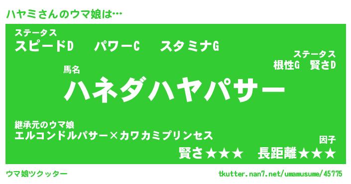 | ファンタジー風あだ名 | 『ハヤフェル』『エターナルハヤミー』 |