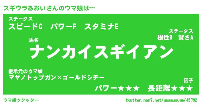 | ポケモン風あだ名 | 『スギチュウ』『スギウダネ』 |