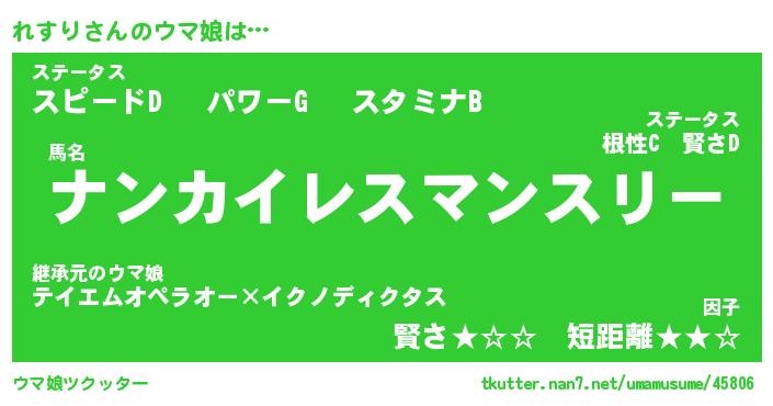 | ポケモン風あだ名 | 『レスチュウ』『レスリダネ』 |