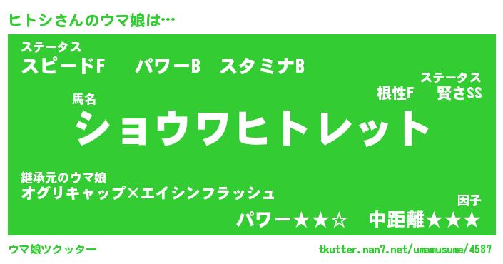 | 肩書あだ名 | 『ヒトシ社長令嬢』『ヒトシ大統領』 |