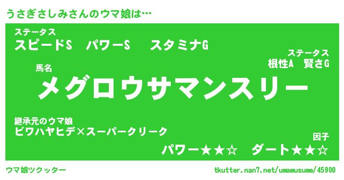 | ポケモン風あだ名 | 『ウサチュウ』『ウサギダネ』 |