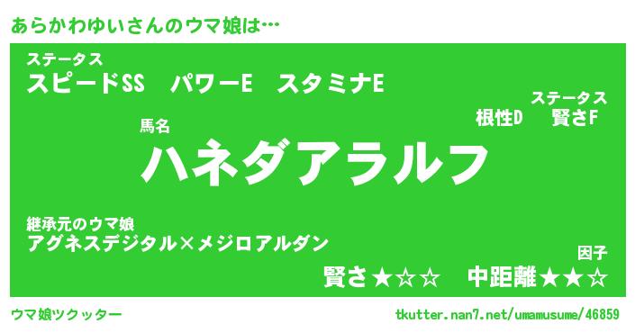 | ポケモン風あだ名 | 『アラチュウ』『アラカダネ』 |
