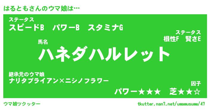 | 意味不明あだ名 | 『ペロリンはるとも』『永久保存はるとも』 |