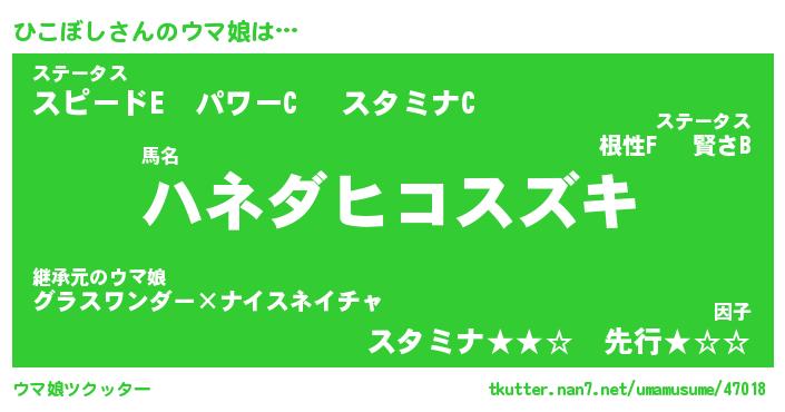 | 2回繰り返すあだ名 | 『ひこひこ』『ひひここ』『うねうね』 |