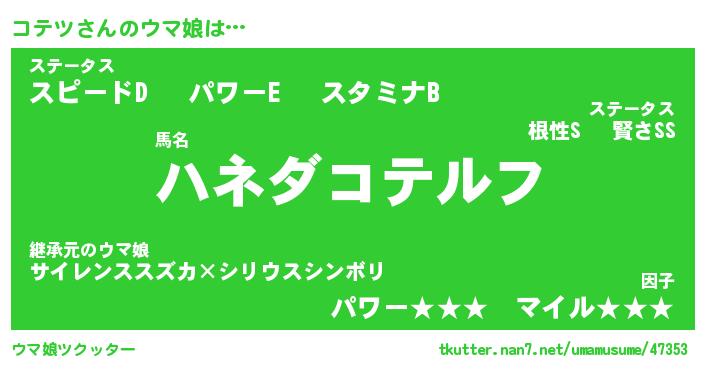 | 2回繰り返すあだ名 | 『コテコテ』『ココテテ』『かたかた』 |