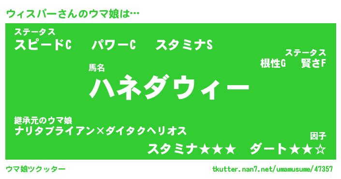 | ポケモン風あだ名 | 『ウィチュウ』『ウィスダネ』 |