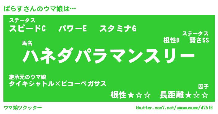 | ヒーロー風カッコイイあだ名 | 『スーパーパラス』『ウルトラぱらすマン』 |