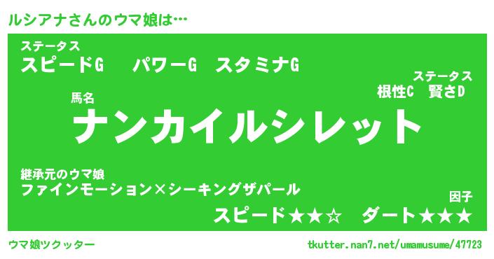 | 2回繰り返すあだ名 | 『ルシルシ』『ルルシシ』『いらいら』 |