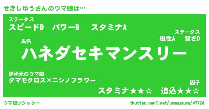 | ツイッター | せきしゆうさんのツイッターID『namakemono_man』 |