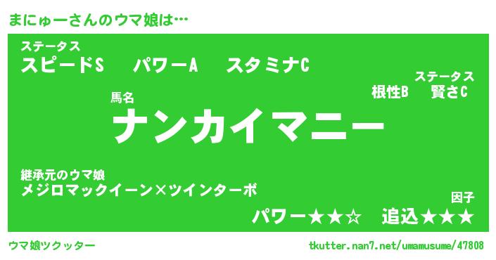| 欧米人風あだ名 | 『マイケルまにゅー』『ウサインまにゅー』 |