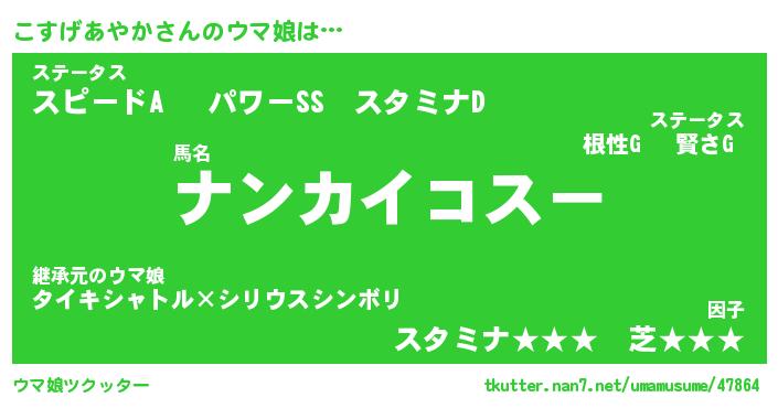 | ポケモン風あだ名 | 『コスチュウ』『コスゲダネ』 |