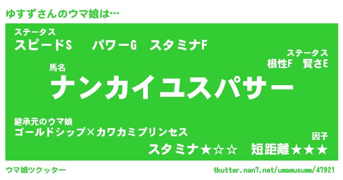 | ポケモン風あだ名 | 『ユスチュウ』『ユスズダネ』 |