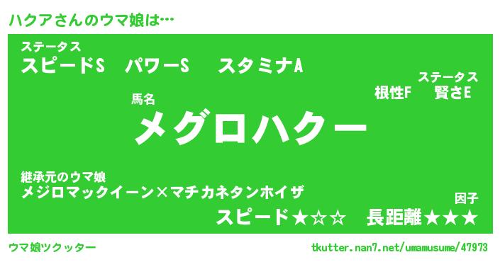 | ヒーロー風カッコイイあだ名 | 『スーパーハクア』『ウルトラハクアマン』 |