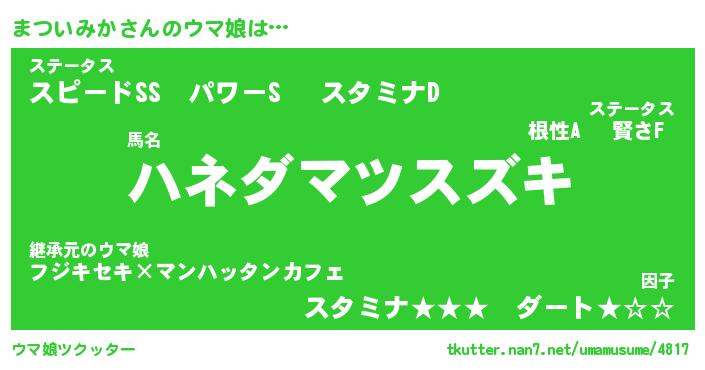 | ヒーロー風カッコイイあだ名 | 『スーパーマツイミカ』『黄金騎士マツ』 |