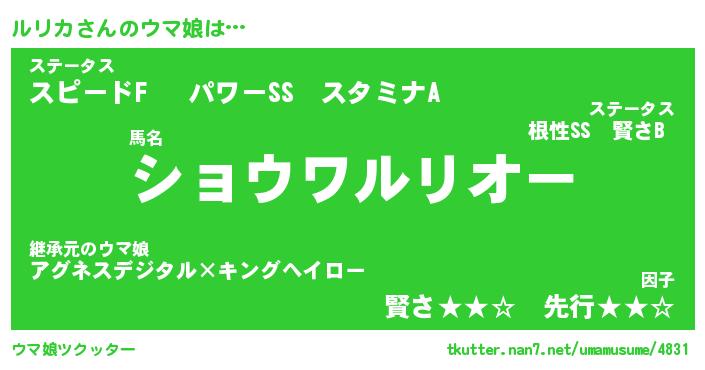 | ヒーロー風カッコイイあだ名 | 『スーパールリカ』『ウルトラルリカマン』 |