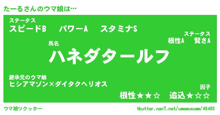 | ファンタジー風あだ名 | 『ターフェル』『エターナルタールー』 |