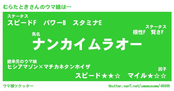 | 男性向けラノベタイトル風あだ名 | 『むらたときの憂鬱』 |