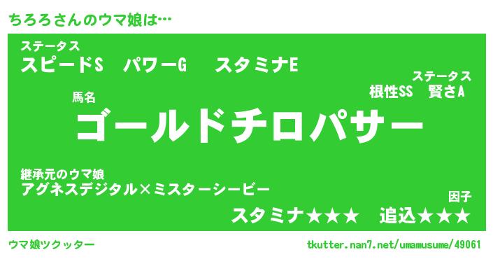 | 意味不明あだ名 | 『ペロリンちろろ』『ちろろフォーエバー』 |