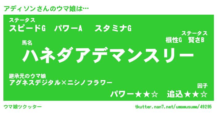 | ポケモン風あだ名 | 『アデチュウ』『アディダネ』 |