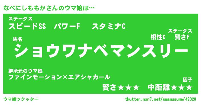 | ヒーロー風カッコイイあだ名 | 『スーパーナベニシモモカ』 |