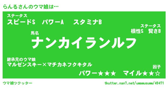 | ポケモン風あだ名 | 『ランチュウ』『ランルダネ』 |