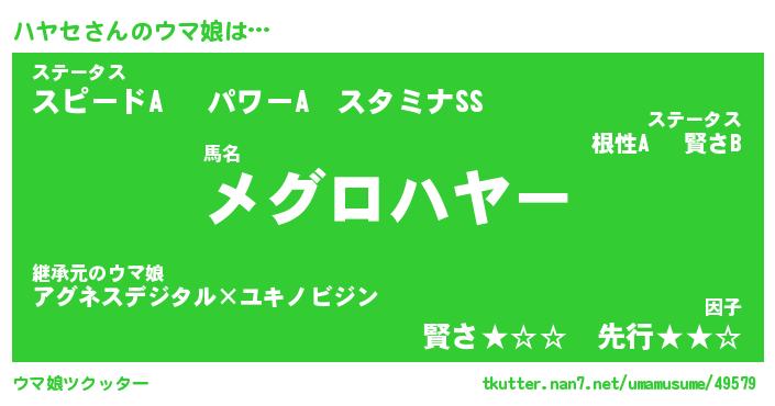 | 意味不明あだ名 | 『ペロリンハヤセ』『ハヤセフォーエバー』 |