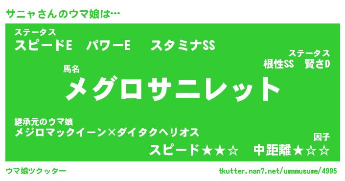 | ポケモン風あだ名 | 『サニチュウ』『サニャダネ』 |