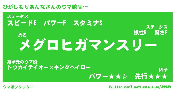 | ヒーロー風カッコイイあだ名 | 『スーパーヒガシモリアンナ』 |