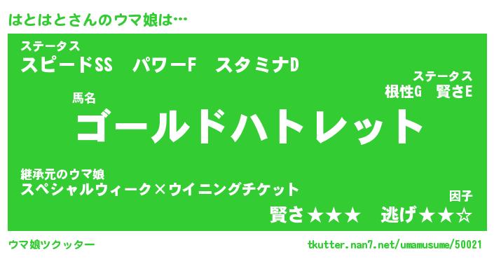 | 男性向けラノベタイトル風あだ名 | 『ハトハトアートオンライン』 |