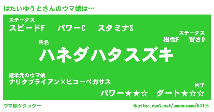 | ヒーロー風カッコイイあだ名 | 『スーパーハタイユウト』『黄金騎士ハタ』 |