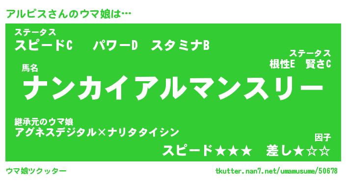 | 意味不明あだ名 | 『ペロリンアルピス』『永久保存アルピス』 |