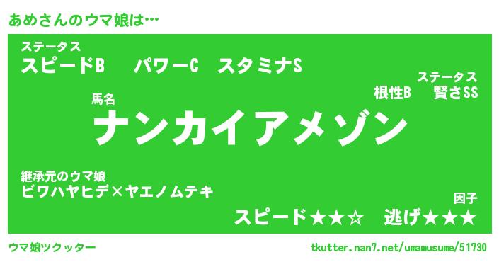 | ポケモン風あだ名 | 『アメチュウ』『アメダネ』『ヒアメ』 |