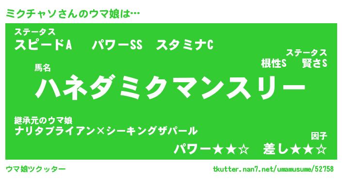 | ポケモン風あだ名 | 『ミクチュウ』『ミクチダネ』 |