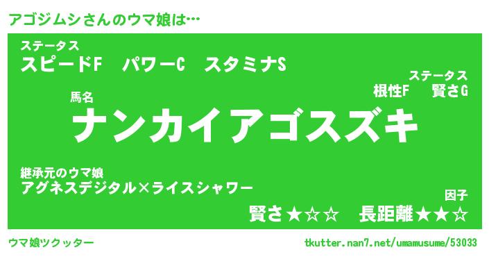 | ファンタジー風あだ名 | 『アゴフェル』『エターナルアゴジムシー』 |