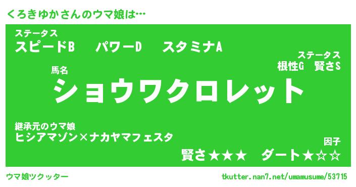 | 伝説のあだ名 | 『不死鳥のスナイパーくろきゆか』 |