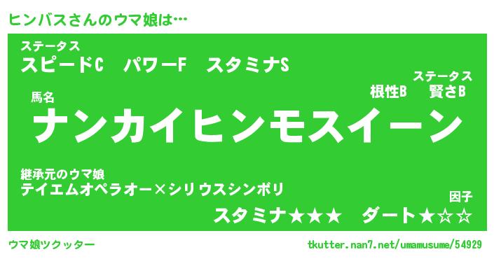 | 意味不明あだ名 | 『ペロリンヒンバス』『永久保存ヒンバス』 |