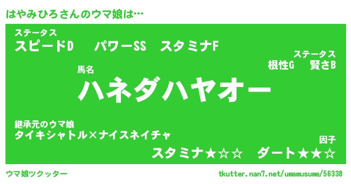 | 自動車の名前っぽいあだ名 | 『ハヤティマ』『ハクア』『ハント』 |
