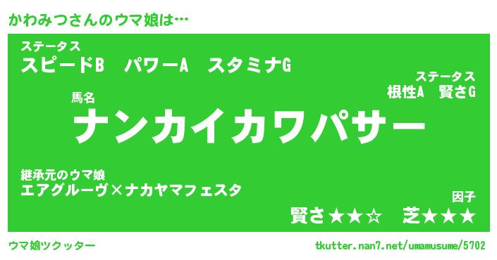 | ポケモン風あだ名 | 『カワチュウ』『カワミダネ』 |